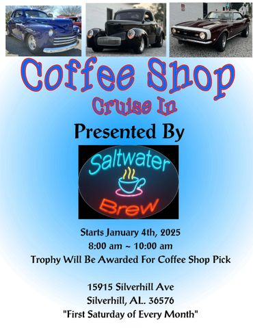 Join us the first Saturday of every month for our Coffee Shop Cruise In. We will have a large variety of classic cars for your viewing pleasure. Make sure you come in and get your favorite drink. Coffee shop will be open from 8am to Noon. We look forward to seeing you!